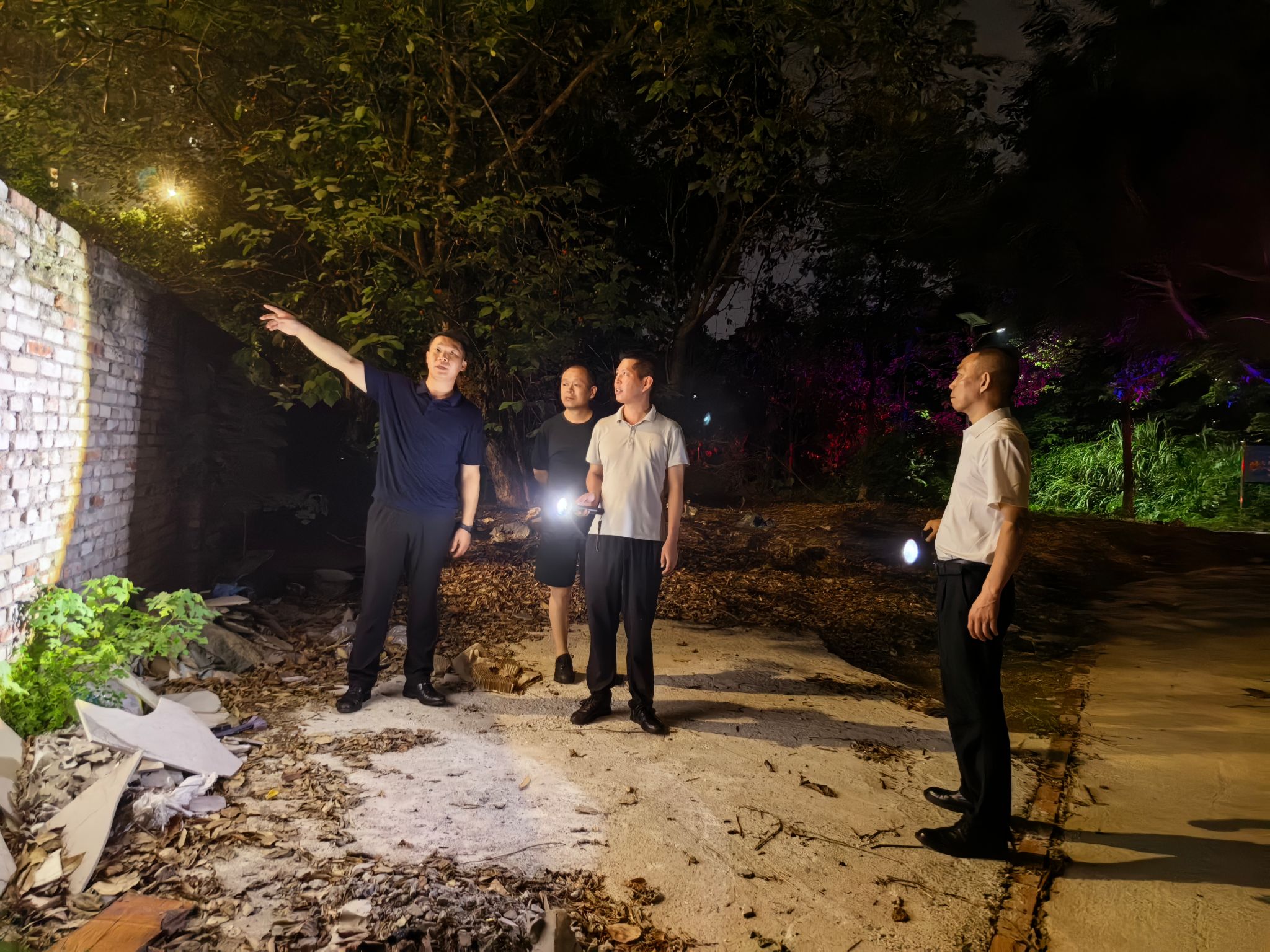 (李川副校长带领工作人员排查学校围墙安全隐患)
